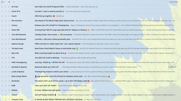 • Using white space in the subject line/inbox preview – accomplished by intentionally filling hidden preview text with space characters (i.e., &nbsp, which is the html character for a space)